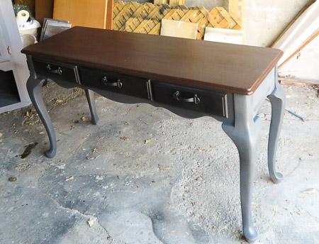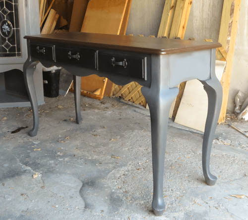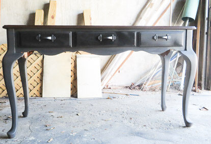 The client required an update on their 30-year furniture in the living room with thick honey varnish.  The color scheme of the newly renovated living room is Contemporary. The Console Table became the focal piece in the living room. Whimsical yet elegant. Authentic Oak Wood. Stripped, Sanded, and Stained Weathered Gray, Black, and Brown as per clients’ preference.